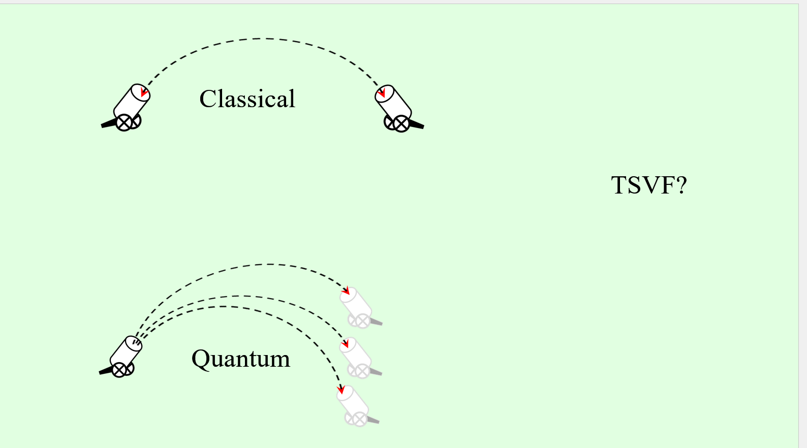 אמר אהרונוב: ניקח עכשיו צמד כזה של תנאי התחלה וסוף, המהווים צירוף נדיר. אם נשוב אל התותח הלא-קדוש, נדמיין שהקליע הקוונטי פגע במקום לא סביר, נאמר: בבוידם של חותנתו של מפקד הגדוד. נדיר אבל קורה. עכשיו, מאותה נקודת פגיעה בבוידם, ברור שגם החישוב או הירייה לאחור יובילו אל מיקום שיגור מופרך, כמו למשל מחלקת הכשרות בעיריית בני-ברק. מה יתקבל אם כן ממסלול שחוּשַב בין צמד לא-סביר כזה של התחלה וסוף?