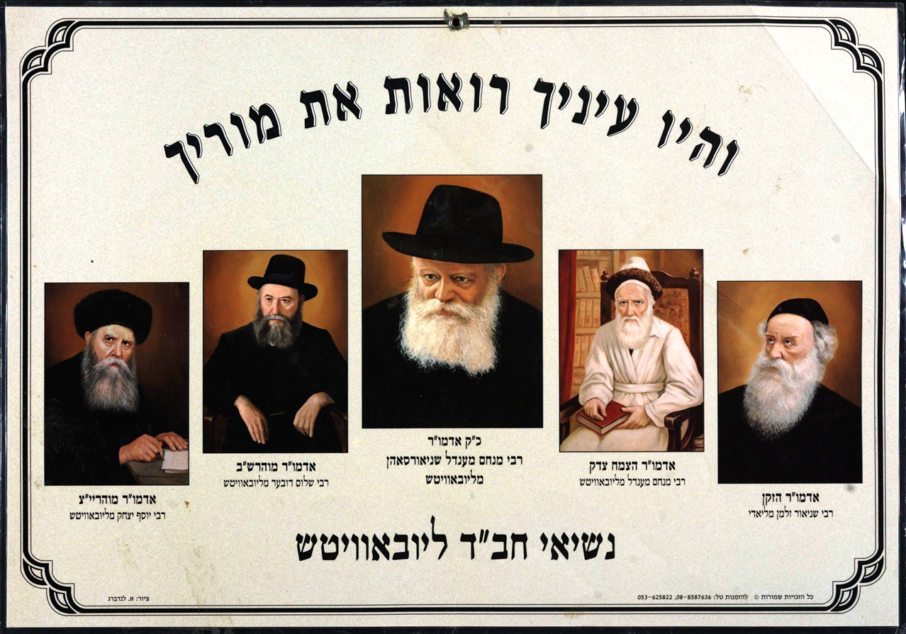 שבעה אדמו"רים היו לחסידות ליובאביטש, שקמה בעיירה בשם זה סמוך לגבול רוסיה-ביילארוס. מייסד השושלת היה ר' שניאור זלמן מלאדי ("אדמו"ר הזקן"), בעל [מחבר] ספר ה"תַנְיָא." בנו היה "אדמו"ר האמצעי," ר' דוּבֵּער שניאורי. הוא העביר את הכס לאחיינו וחתנו, מנחם-מענדל שניאורסאהן הראשון, שנקרא "אדמו"ר צמח צדק" על שם ספרו הנודע. ממנו עבר הכס לאדמו"ר המהר"ש (ר' שמואל), וממנו לבנו אדמו"ר הרש"ב (ר' שלום דב-בֶּער [דוּבֵּער]). בנו של הרש"ב היה אדמו"ר הריי"צ (ר' יוסף יצחק), שאחרי השואה העביר את החסידות מרוסיה לארה"ב. הוא הוליד רק שלוש בנות, ולכן עבר הכס לחתנו, מנחם-מנדל שניאורסון, האדמו"ר השביעי והאחרון, שרבים עדיין רואים בו משיח.