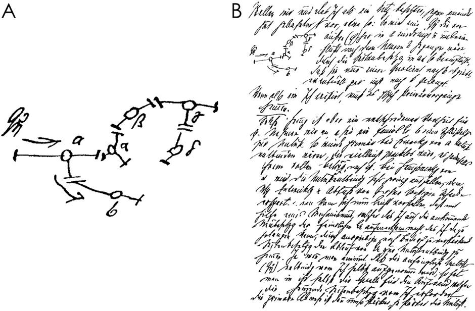 כיוון שפרויד מדבר כאן רק אל עצמו ואל פליס, וגם זאת על סמך שיחות רבות שלא שמענו, נאלץ הקורא לפלס דרכו בסבך משפטים טלגרפיים, לפעמים קטועים, מנומרים בקיצורים ובאותיות לטיניות ויווניות. פרויד מתחיל, כראוי, מהנוירון, תא העָצַב. הוא מציע הבחנה בין שתי מערכות: Φ (פִי) המורכבת מנוירונים המחוברים ישירות לאברי החישה, ו-Ψ (פּסִי) שהנוירונים שלה מבודדים מהעולם החיצוני. האחרונים תפקידם לעבד את האותות המגיעים מ-Φ, וכן (בדרך שלא הצלחתי להבין) להמיר "כמויות" ב"איכויות." קב-ונקי משער שפרויד בחר ב- Φ בשל סמיכותה באלפבית היווני ל-Ψ, או כמסמלת flux, שטף באנגלית, אבל אעז ואומר שזו בפשטות המילה היוונית φύσις (פִיזִיס) המציינת "טבע" או "גוף" לעומת ψυχή (פְּסִיכֵה), "נפש."