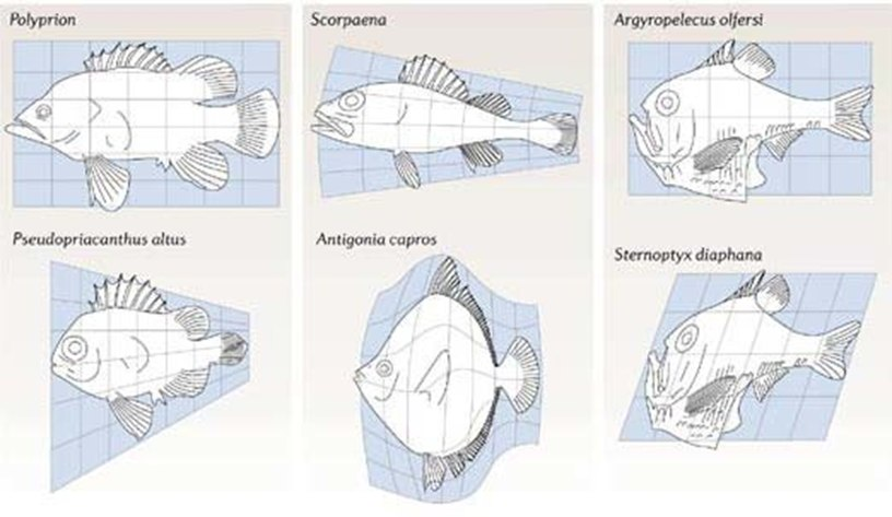 כאמור המנגנון הגנטי של הניאוטניה עדיין נחקר באינטיסיביות, וכאן המקום לשוב אל אחד הביולוגים האהובים עליי, דַארסי וֶּנטווֹרת' תומפסון. בזמנו של הגאון הבריטי האקסצנטרי הזה עוד לא היו מחשבים, אבל בשימוש במתמטיקה וטופולוגיה הוא הצליח להראות איך מינים שונים מאוד לכאורה של בעלי חיים ניתנים לשחזור זה מזה כאשר מציירים אותם על רשת קואורדינטות ואז מעקמים את הרשת בצורה מדויקת.
